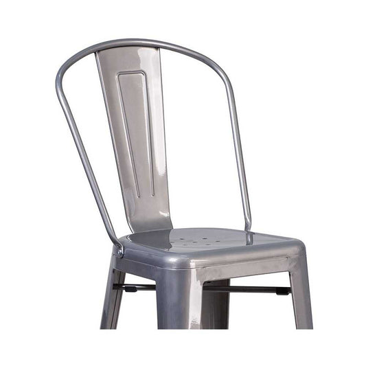 30" High Metal Indoor Bar Stool with Wood Seat in Silver - Stackable Set of 4