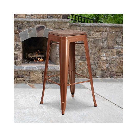 30" High Backless Mint Green Barstool with Square Wood Seat