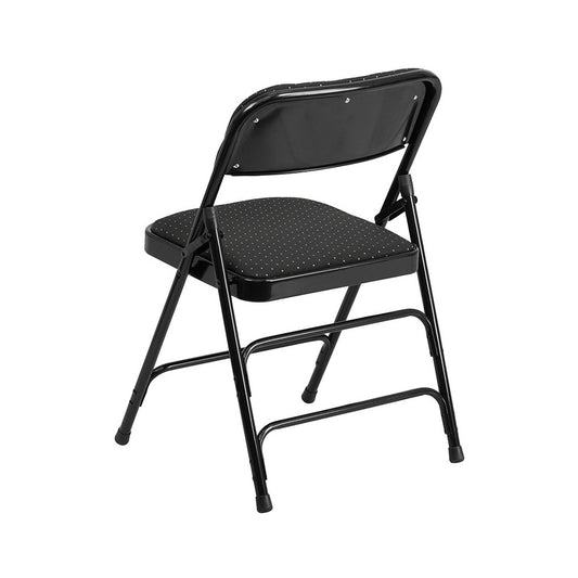 2 Pack Curved Triple Braced & Double Hinged Black Patterned Fabric Metal Folding Chair