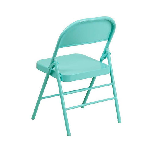 2 Pack Series Tantalizing Teal Triple Braced & Double Hinged Metal Folding Chair