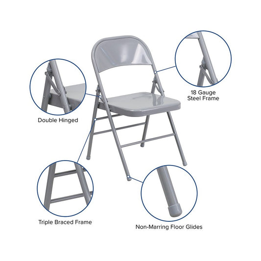 2 Pack Triple Braced & Double Hinged Gray Metal Folding Chair