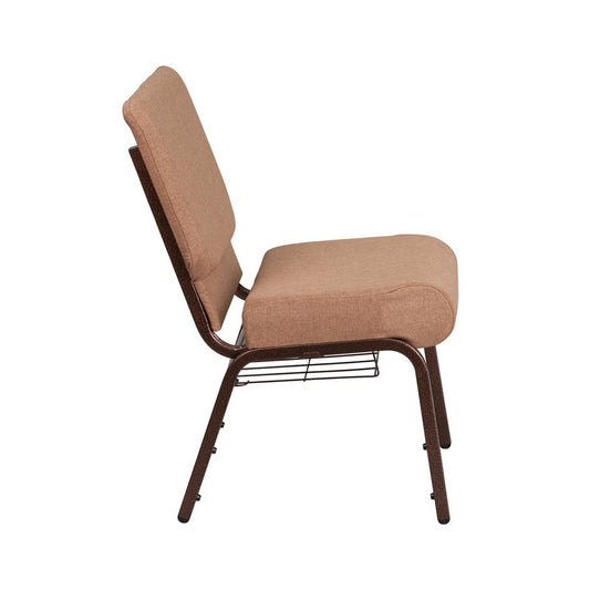 21''W Stacking Church Chair in Caramel Fabric - Copper Vein Frame
