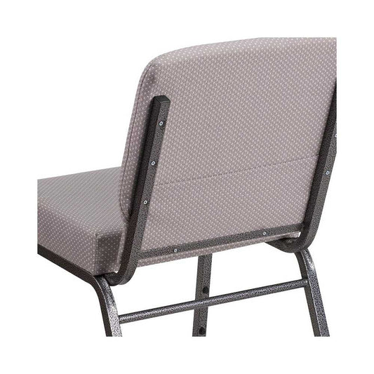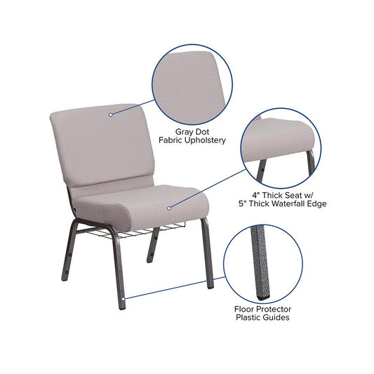 21''W Church Chair in Gray Dot Fabric with Book Rack - Silver Vein Frame