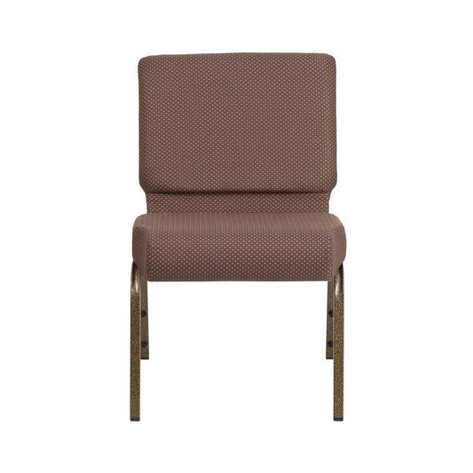 21''W Stacking Church Chair in Brown Dot Fabric - Gold Vein Frame