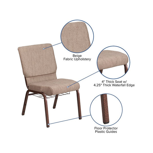 18.5''W Church Chair in Beige Fabric with Book Rack - Copper Vein Frame