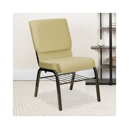 18.5''W Church Chair in Beige Patterned Fabric with Book Rack - Gold Vein Frame