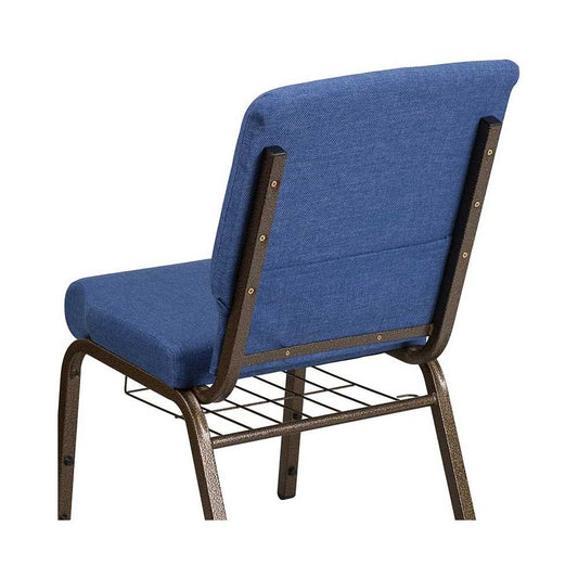 18.5''W Church Chair in Blue Fabric with Cup Book Rack - Gold Vein Frame