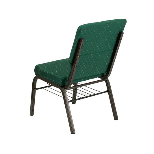 18.5''W Church Chair in Green Patterned Fabric with Book Rack - Gold Vein Frame