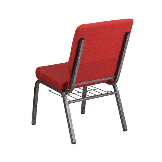 18.5''W Church Chair in Red Fabric with Cup Book Rack - Silver Vein Frame