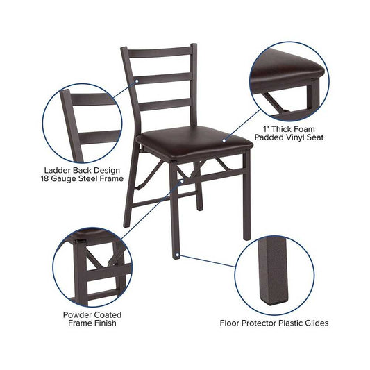2 Pack Brown Folding Ladder Back Metal Chair with Brown Vinyl Seat