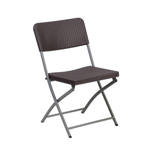 2 Pack Brown Rattan Plastic Folding Chair with Gray Frame