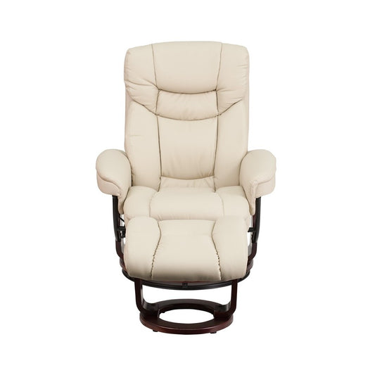 Recliner Chair with Ottoman | Beige LeatherSoft Swivel Recliner Chair with Ottoman Footrest
