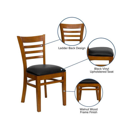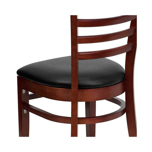 Ladder Back Mahogany Wood Restaurant Chair - Black Vinyl Seat