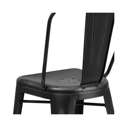 Commercial Grade 30" High Distressed Black Metal Indoor-Outdoor Barstool with Back