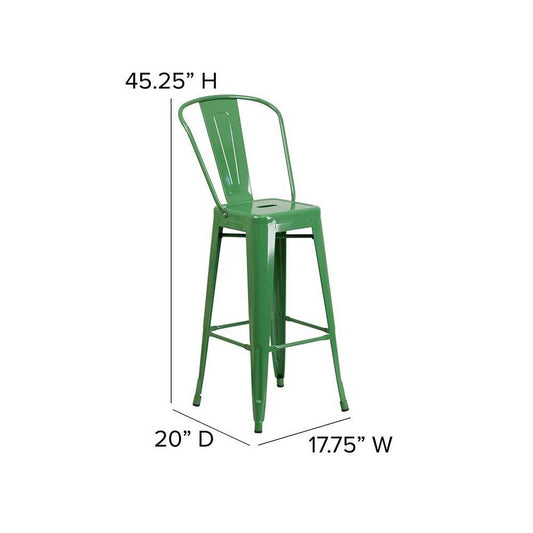 Commercial Grade 30" High Green Metal Indoor-Outdoor Barstool with Removable Back