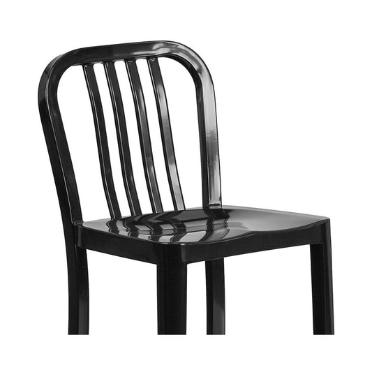Commercial Grade 24" High Black Metal Indoor-Outdoor Counter Height Stool with Vertical Slat Back