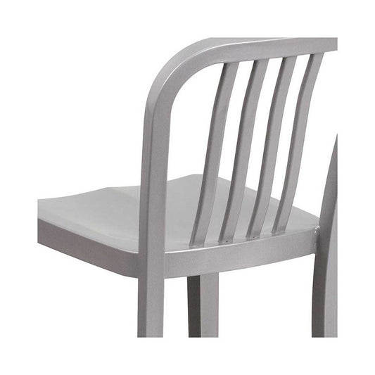 Commercial Grade 24" High Silver Metal Indoor-Outdoor Counter Height Stool with Vertical Slat Back