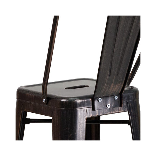 Commercial Grade 24" High Distressed Black Metal Indoor-Outdoor Counter Height Stool with Back