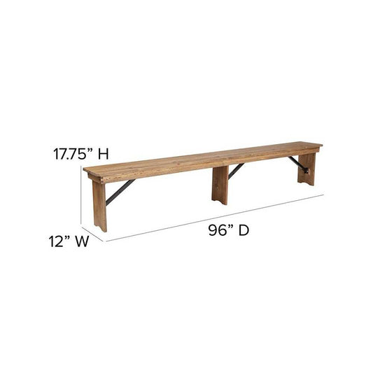 8' x 12'' Antique Rustic Solid Pine Folding Farm Bench with 3 Legs