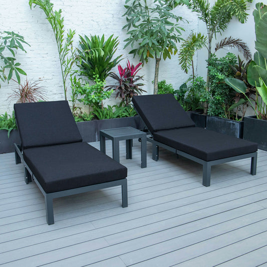 LeisureMod Chelsea Modern Outdoor Chaise Lounge Chair With Side Table & Cushions