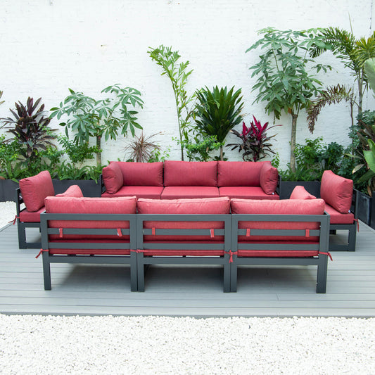 LeisureMod Chelsea 8-Piece Patio Sectional- Red