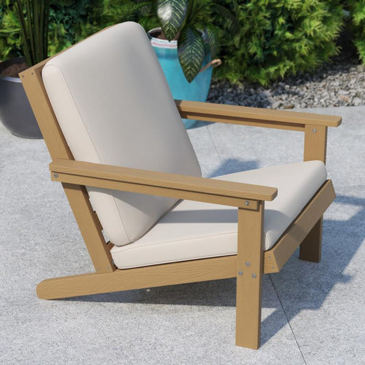 LeisureMod Chelsea Patio Sectional & Fire Pit Table & Cushions, Beige