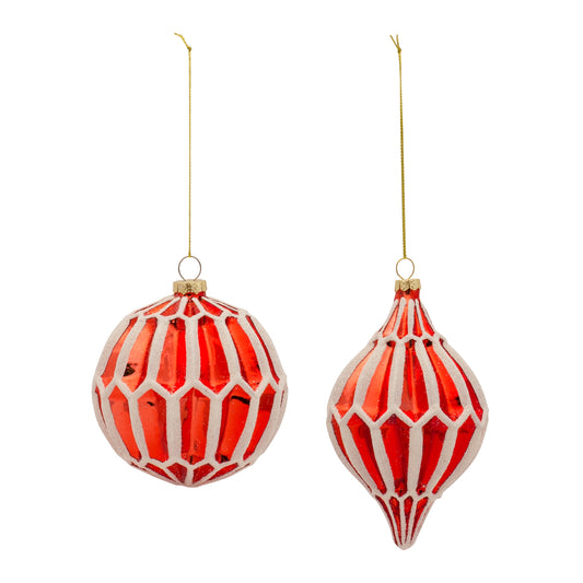 Ornament (Set Of 6) 4.75"H, 5.75"H Glass, Red, White