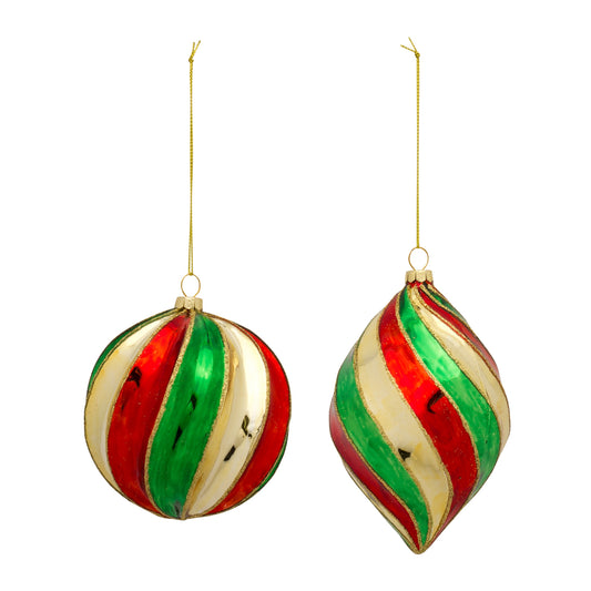 Ornament (Set Of 6) 5"H, 6"H Glass, Red, Gold, Green