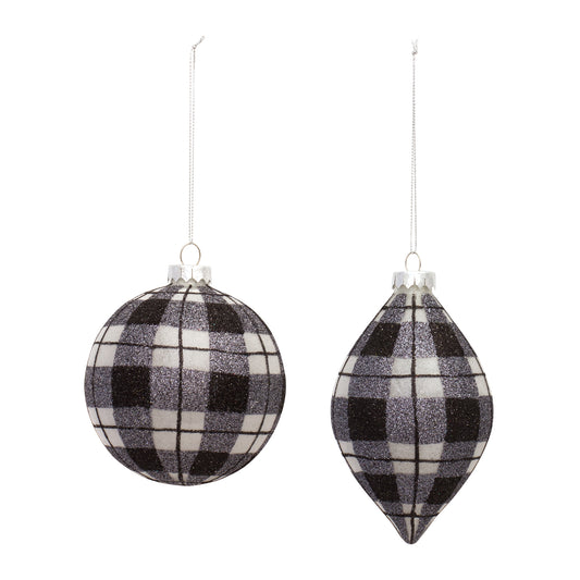 Ornament (Set Of 6) 5"H, 6"H Glass, White, Black