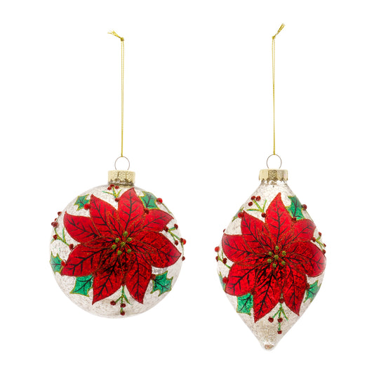 Poinsettia Ornament (Set Of 6) 5"H, 6"H Glass
