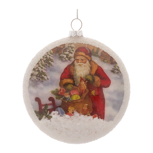 Santa Disc Ornament (Set Of 12) 4.75"H Glass