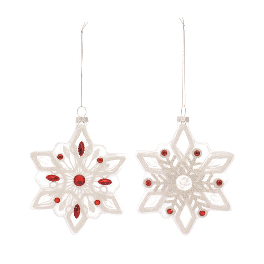 Snowflake Ornament (Set Of 12) 5.5"H Glass, Red, White