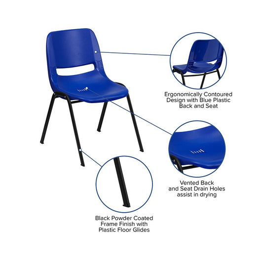 661 lb. Capacity Navy Ergonomic Shell Stack Chair with Black Frame and 16'' Seat Height