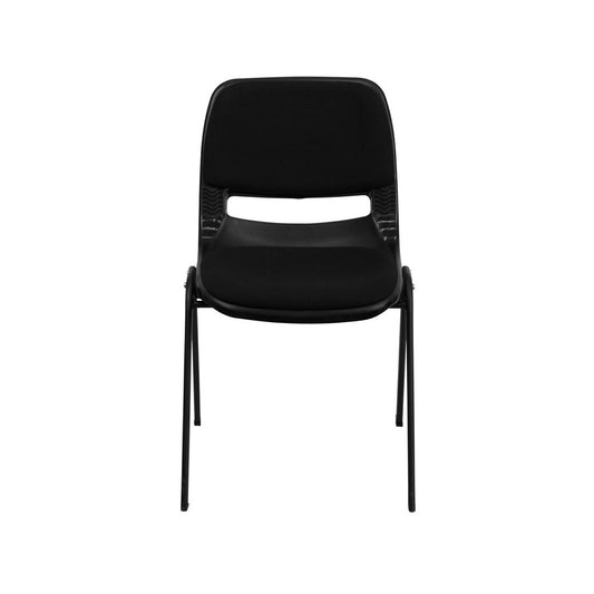 880 lb. Capacity Black Padded Ergonomic Shell Stack Chair with Black Frame