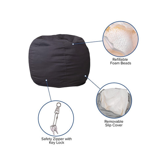 Small Solid Gray Bean Bag Chair for Kids and Teens