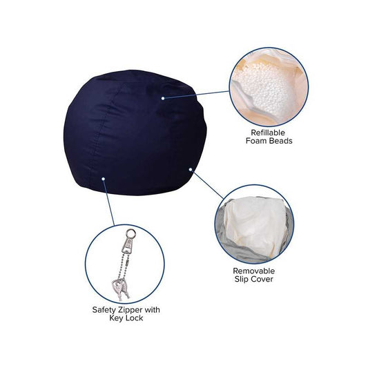 Small Solid Navy Blue Bean Bag Chair for Kids and Teens