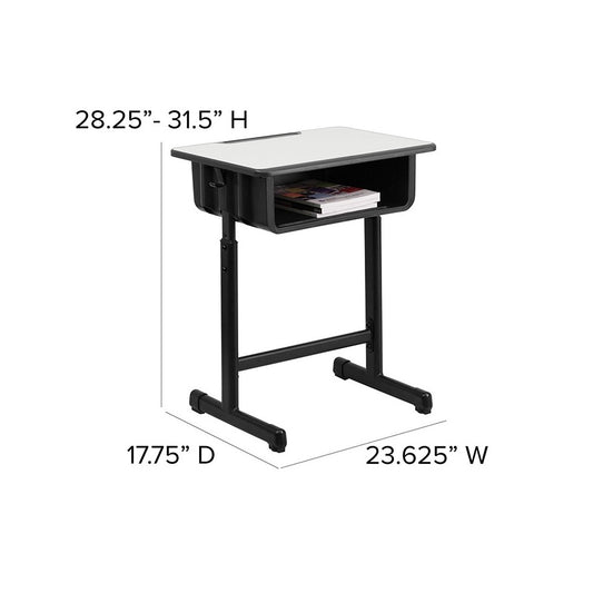 Student Desk with Gray Top and Adjustable Height Black Pedestal Frame