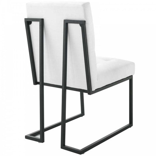Privy Black Stainless Steel Upholstered Fabric Dining Chair, Black White