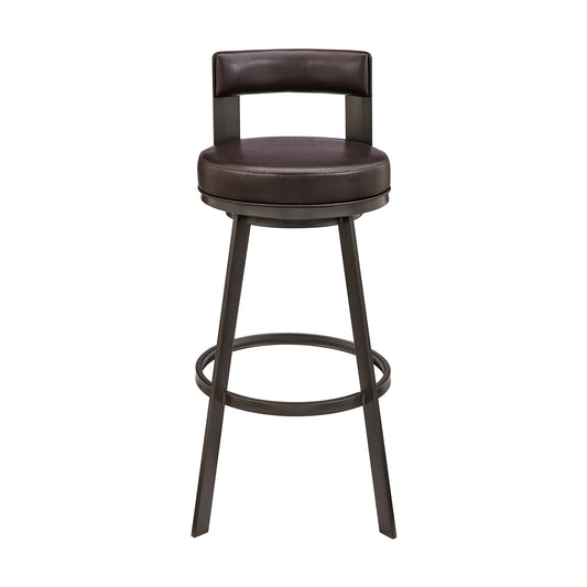 Lynof Swivel Bar Stool in Brown Metal with Brown Faux Leather