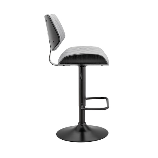 Leland Adjustable Gray Faux Leather and Black Finish Bar Stool