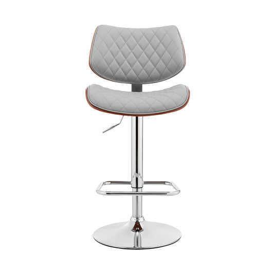 Leland Adjustable Gray Faux Leather and Chrome Finish Bar Stool