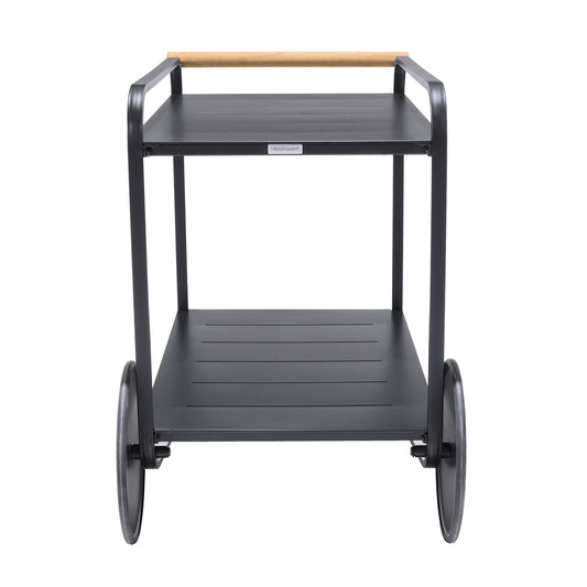 Portals Outdoor Accent Cart in Black Finish and Natural Teak Wood Accent