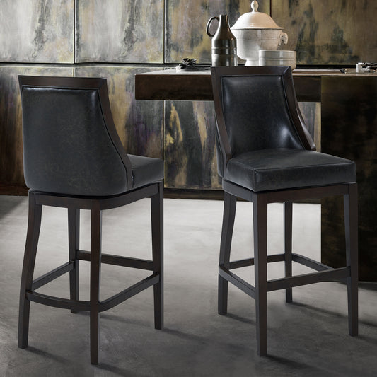 Presley 30" Bar Height Swivel Barstool in Espresso Finish with Onyx Faux Leather