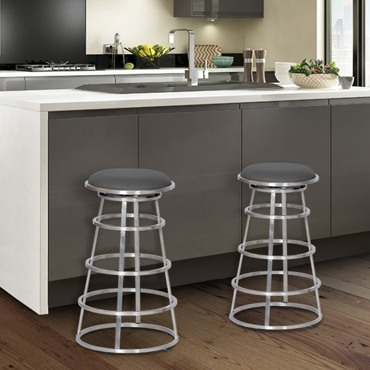 Ringo 30" Backless Brushed Stainless Steel Barstool in Gray Faux Leather