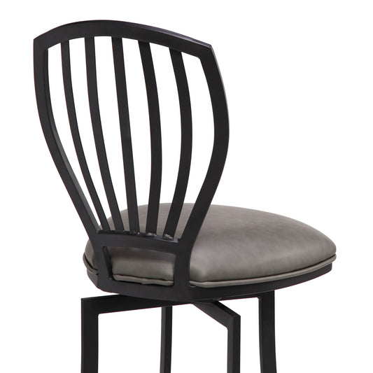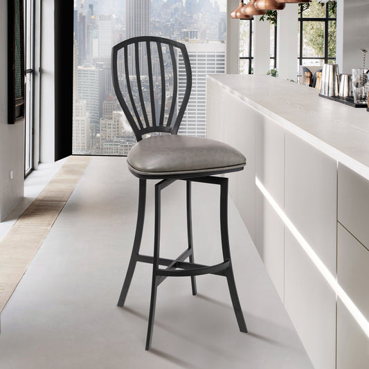 Shelly 26" Counter Height Swivel Grey Faux Leather and Black Wood Bar Stool