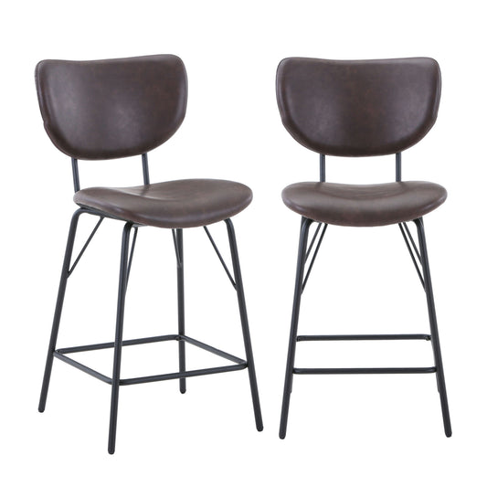 Owen Faux Leather Split-Back Counter Height Barstool (Set of 2) - Dark Brown