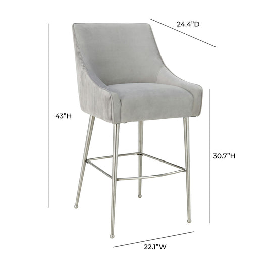 TOV Furniture Beatrix Pleated Light Grey Velvet Bar Stool
