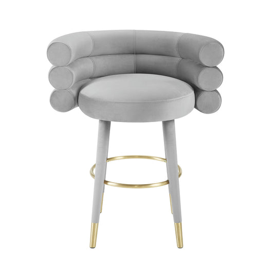 TOV Furniture Beatrix Pleated Light Grey Velvet Counter Stool