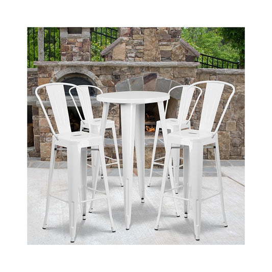 Commercial Grade 24" Round White Metal Indoor-Outdoor Bar Table Set with 4 Cafe Stools