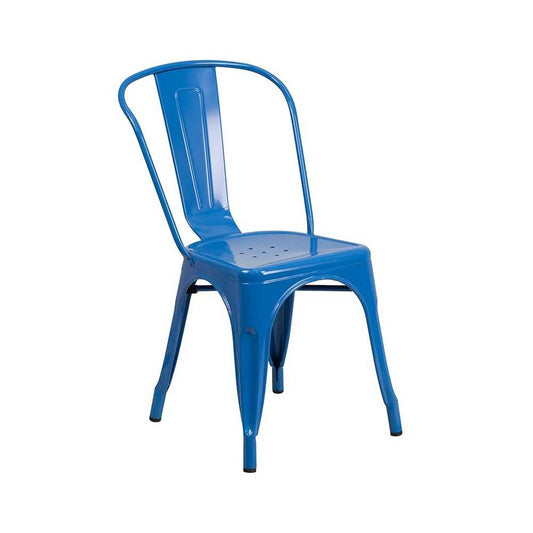 Commercial Grade 31.5" x 63" Rectangular Blue Metal Indoor-Outdoor Table Set with 6 Stack Chairs